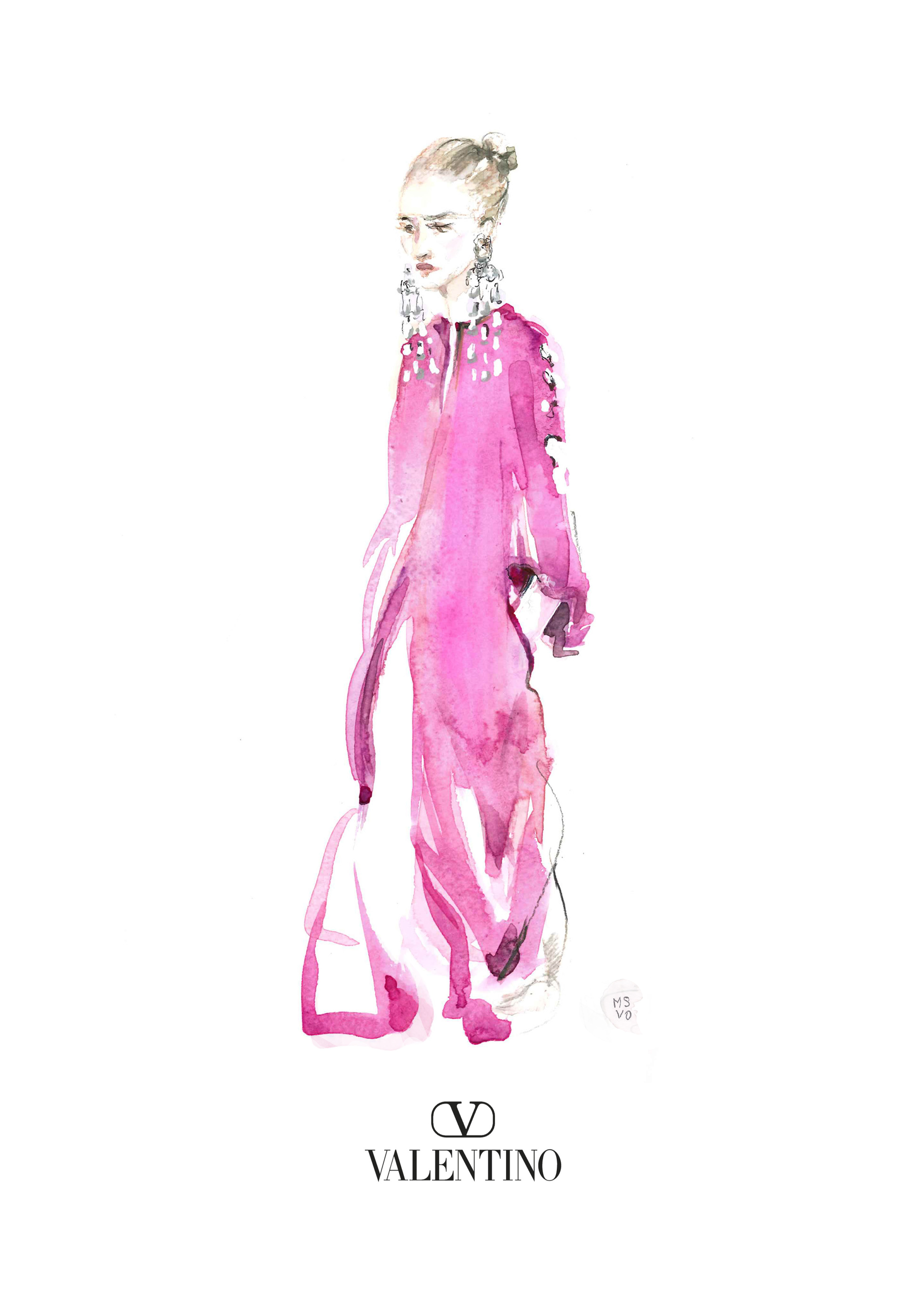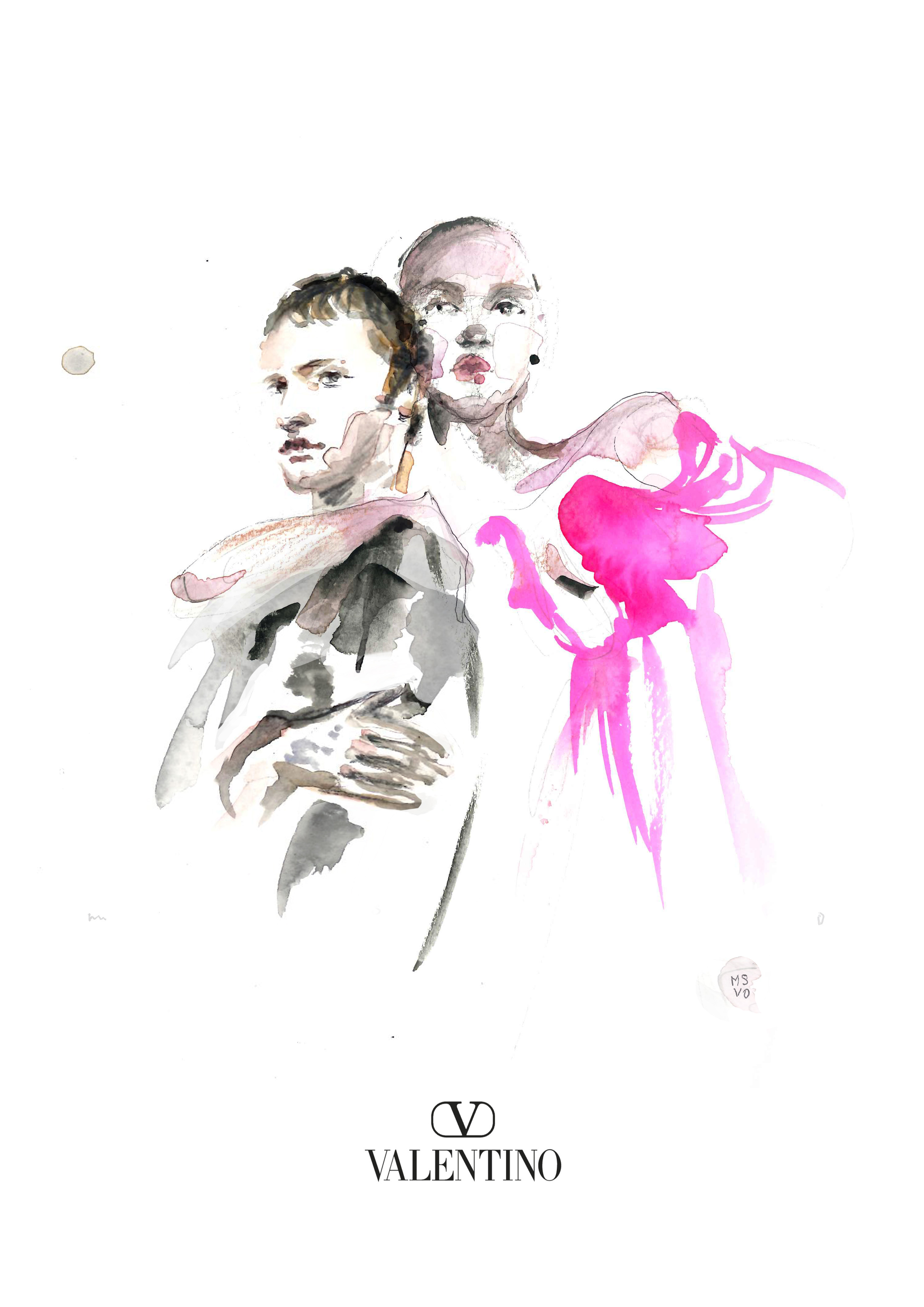 This illustration above is an example; one of the final series, made in watercolor inspired by the most beautiful atmosphere I have ever seen and starring VALENTINO “A Chateau”_. show. Haute Couture AW 2023-24