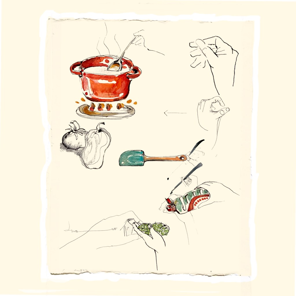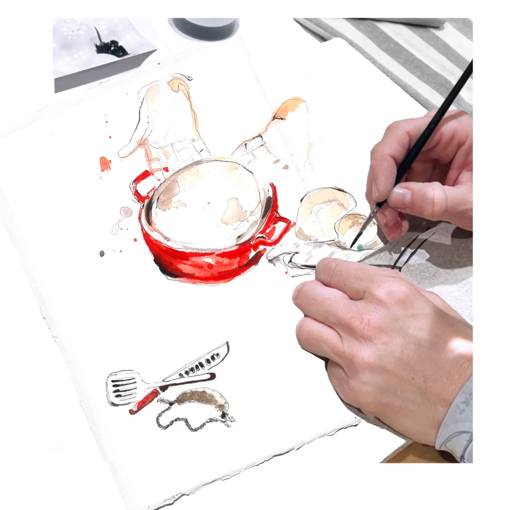 here above and below, some pages and sketches of this marvelous art work I made under a deep research of what really inspires Chefs and discovering the essence and presence of themselves.